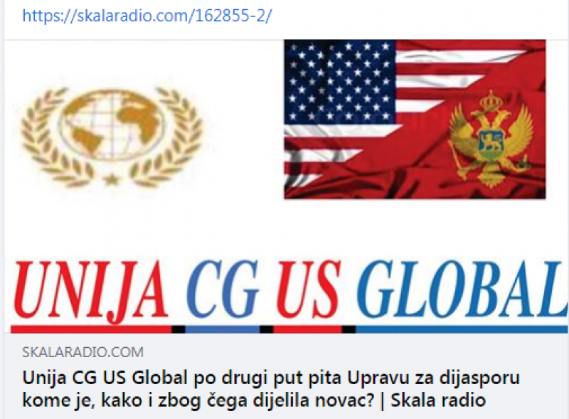 Unija CG US Global je po drugi put uputila dopis Upravi za dijasporu u kome traži da joj se dostave podaci o načinu na koji su udruženja u dijaspori dobila sredstva iz budžeta, kako su ona utrošena i ko je odlučivao o raspodjeli.