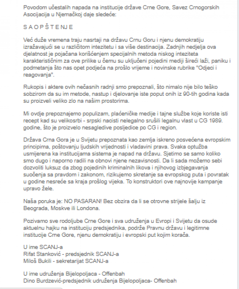 13.08 2022. Izjave saučešća Crnogorske dijaspore -iseljenika povodom tragedije u Cetinju