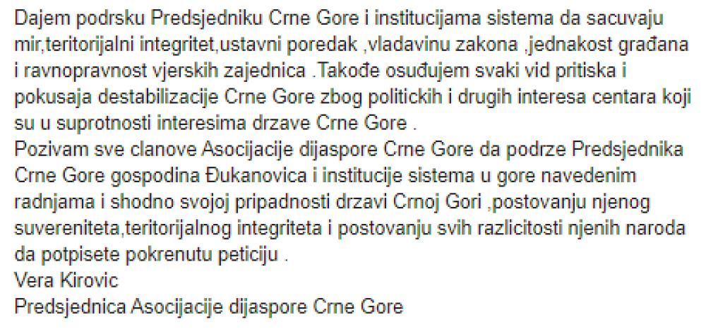Iz navedenih razloga pozivamo sve političke aktere u međunarodnoj zajednici i regionu da nedvosmisleno osude destabilizaciju Crne Gore i regiona koju kreira i podstiče zvanični Beograd.