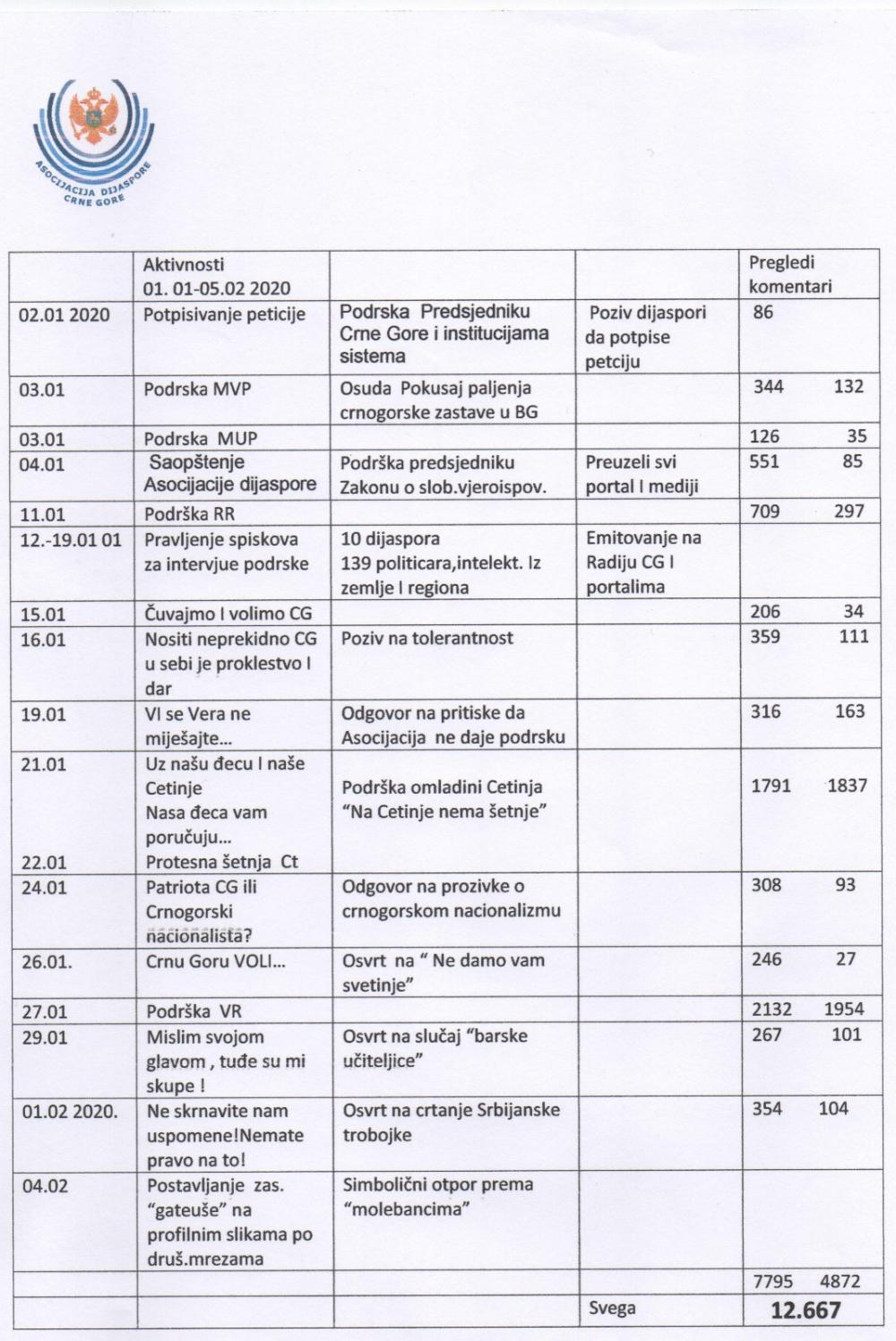 05.02 2020. Analiza aktivnosti za januar 2020.