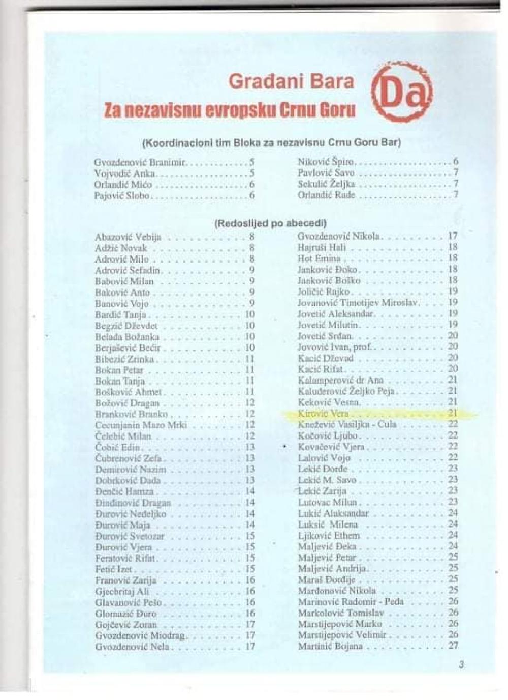 Poslije zadnjih dešavanja u državi , đe po našim ulicama gledamo povampirenu popovsku ideologiju retrogradne politike “velikog nebeskog naroda” koju je civilizovani svijet osudio i na nju stavio pečat genocidne politike , mislim da je prije ovog pitanja “Kako vidim CG 14 godina nakon referenduma ” trebalo postaviti pitanje “Zašto sam prije 14 godina pristupila Pokretu za nezavisnu i zašto sam na pitanje” Želite li da Republika Crna Gora bude nezavisna država sa punim medjunarodno-pravnim subjektivitetom?”, odgovorila sa DA .
