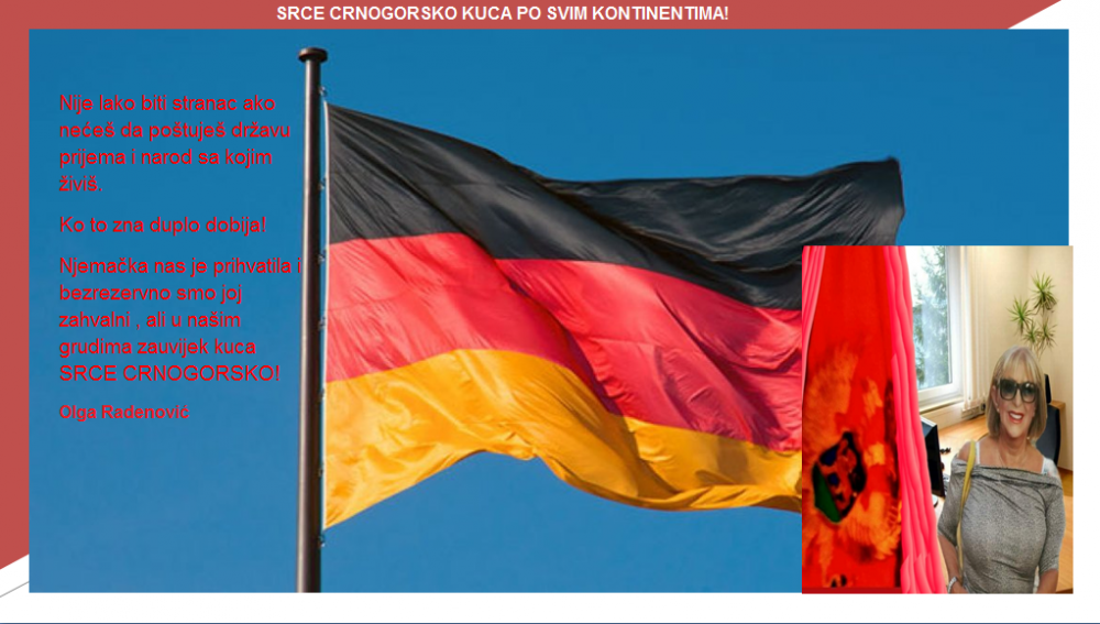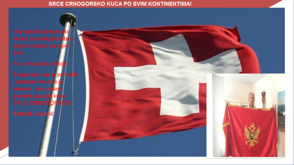 Od dijaspore Crne Gore mnogi od nas mogu da uče kako se voli Crna Gora , njena tradicija , istorija , kultura , državni simboli i institucije sistema . Odlazeći u neke druge države tuđe, a opet svoje oni poštuju zakone, državne simbole I institucije država prijema i kažu :”Nije lako biti stranac u tuđoj državi , ako nećeš da poštuješ državu prijema i narod sa kojim živiš. Ko to zna, duplo dobija! Ova država nas je prihvatila i bezrezervno smo joj zahvalni , ali u našim grudima zauvijek kuca SRCE CRNOGORSKO! “Nek nam ove riječi budu putokaz za dalje da možemo živjeti bez podjela nametnutih ili samoizabranih …da sa ponosom ističemo Crnu Goru i njene državne simbole jer Crna Gora je dom svih nas bez obzira đe i na koji način se molimo onom u kojeg vjerujemo!