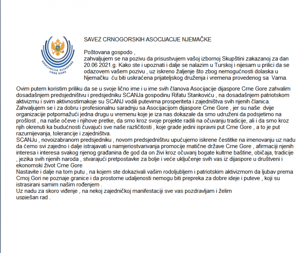 dijaspore Crne Gore zahvalim dosadašnjem predsjedništvu i predsjedniku SCANJa