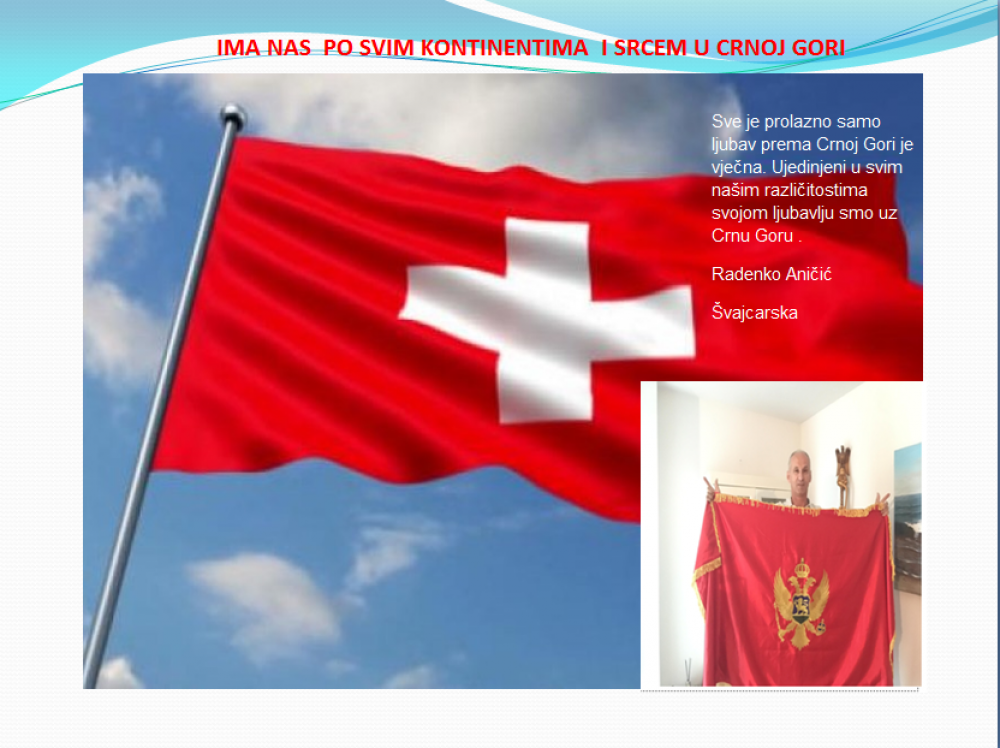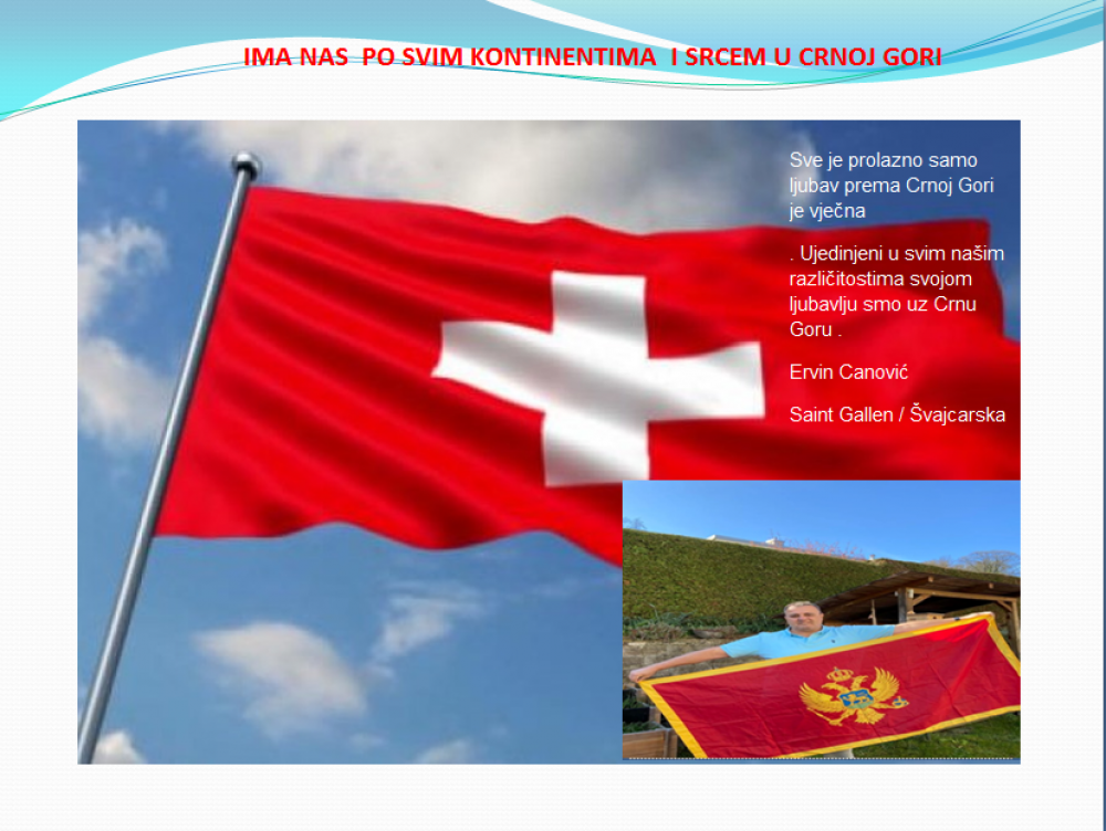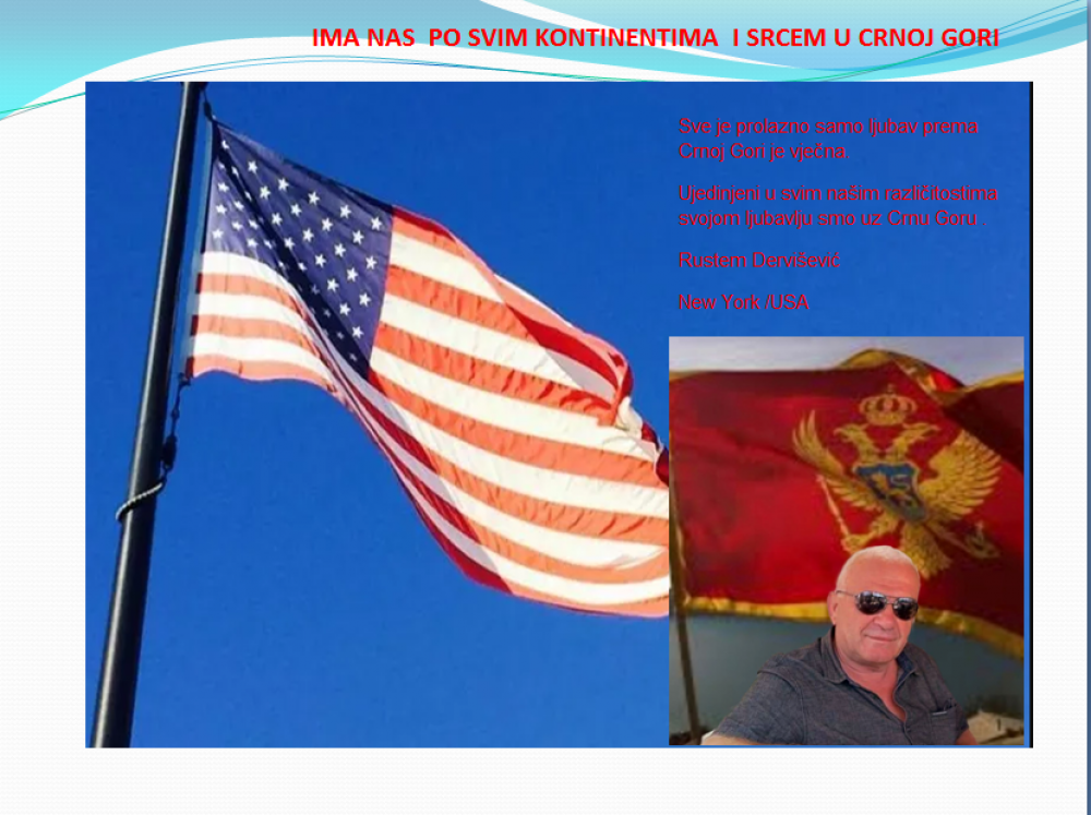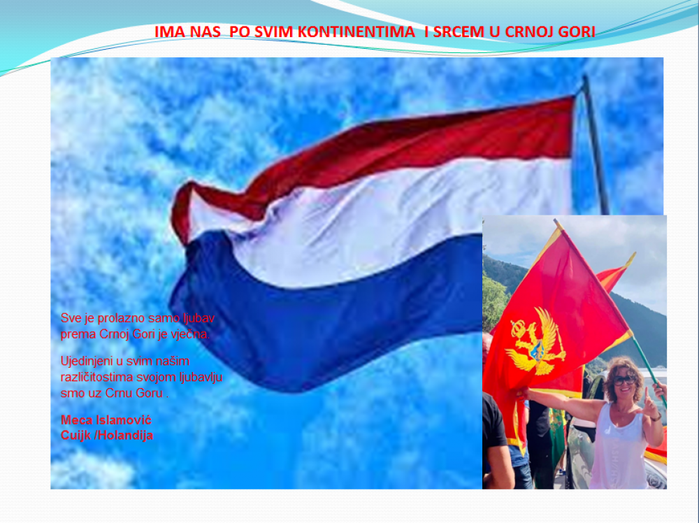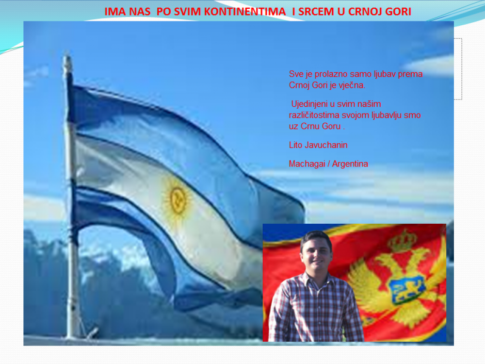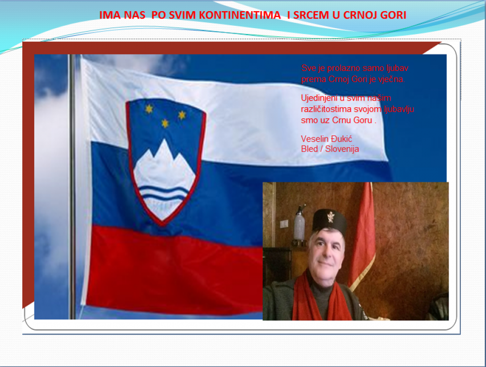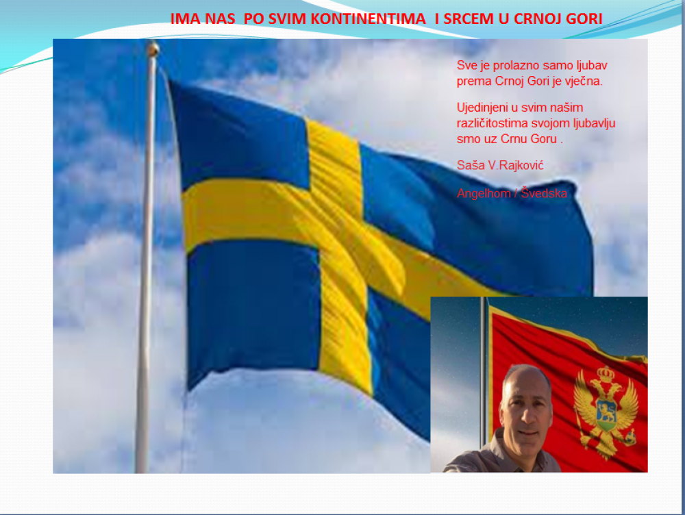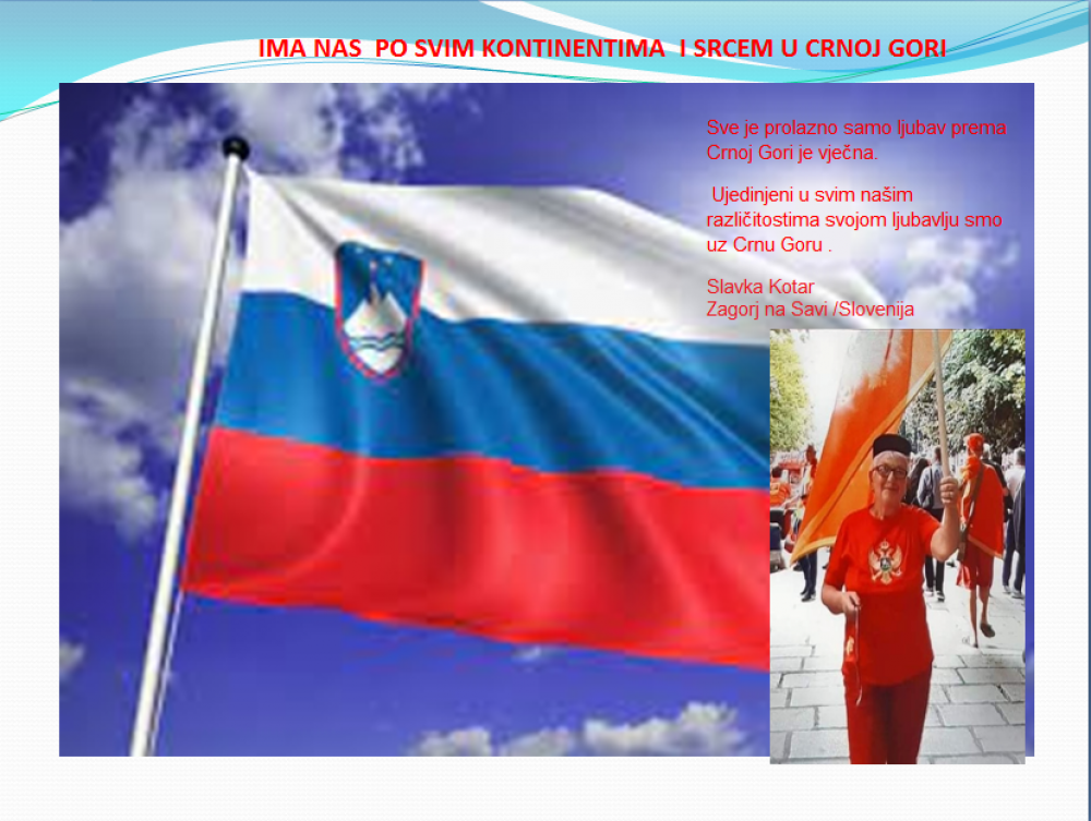 Okrenite se budućnosti, širite ljubav i bez obzira na sve vaše/naše lične pripadnosti , pripadnost Crnoj Gori se jedino mjeri samo ljubavlju prema njoj i ne zaboravite da NAS IMA PO SVIM KONTINENTIMA I SRCEM U CRNOJ GORI.