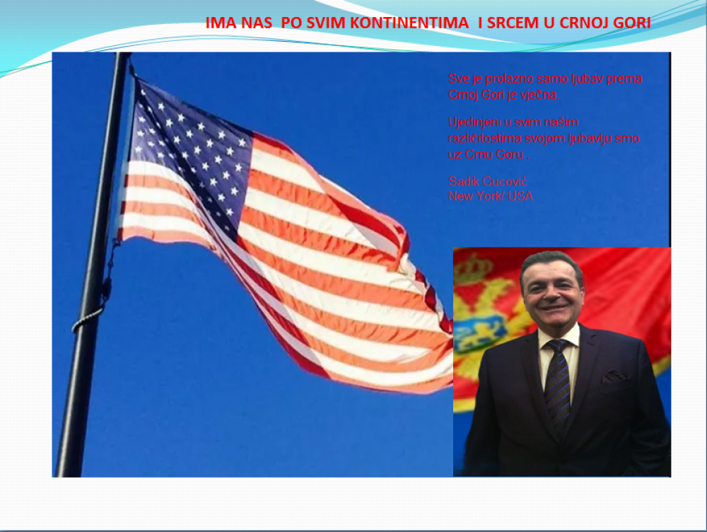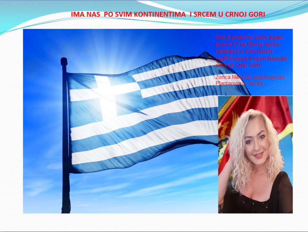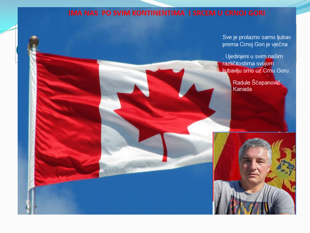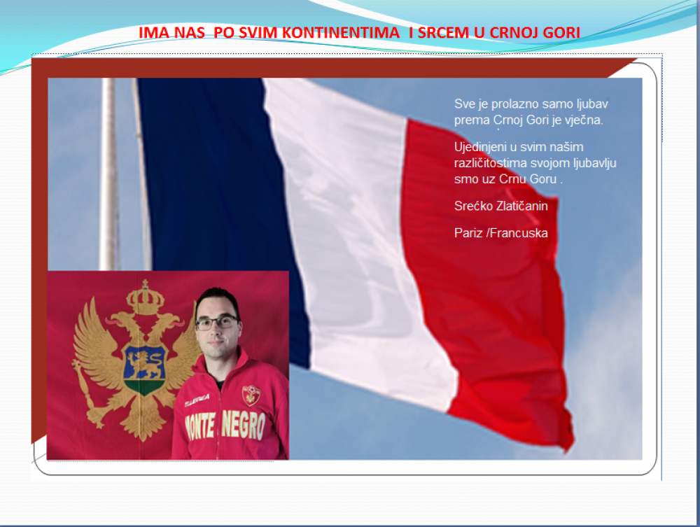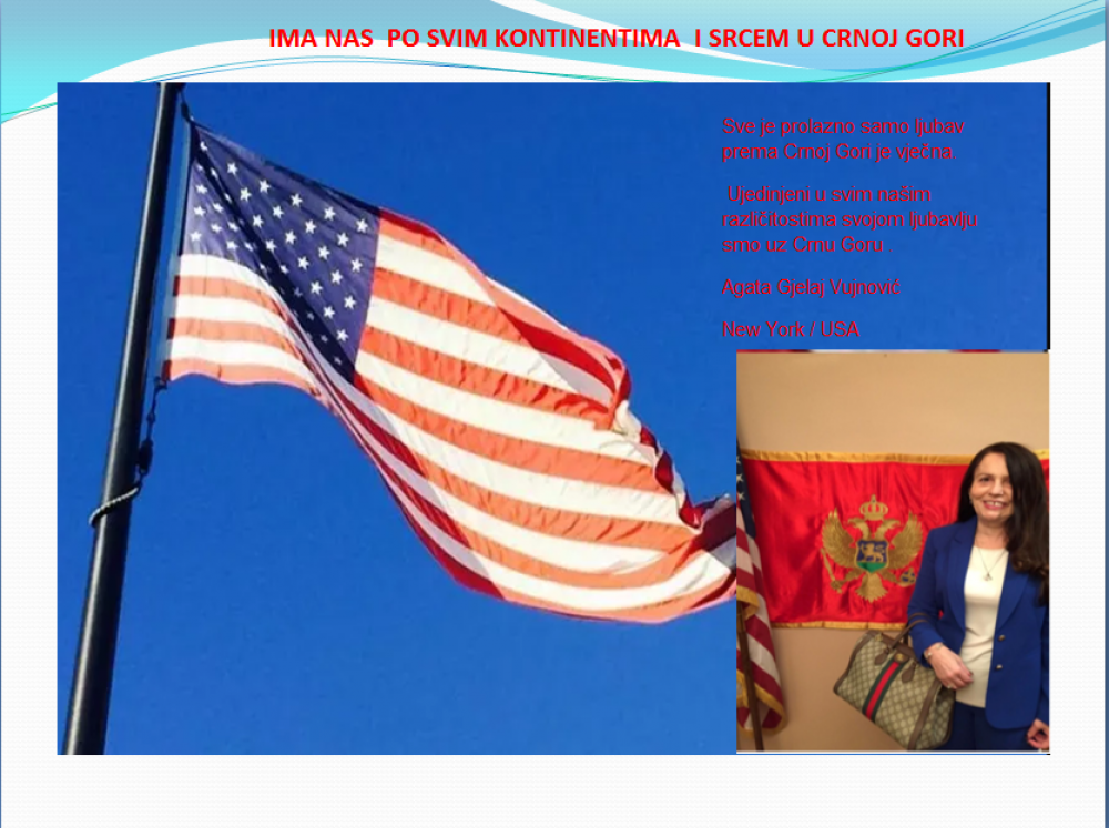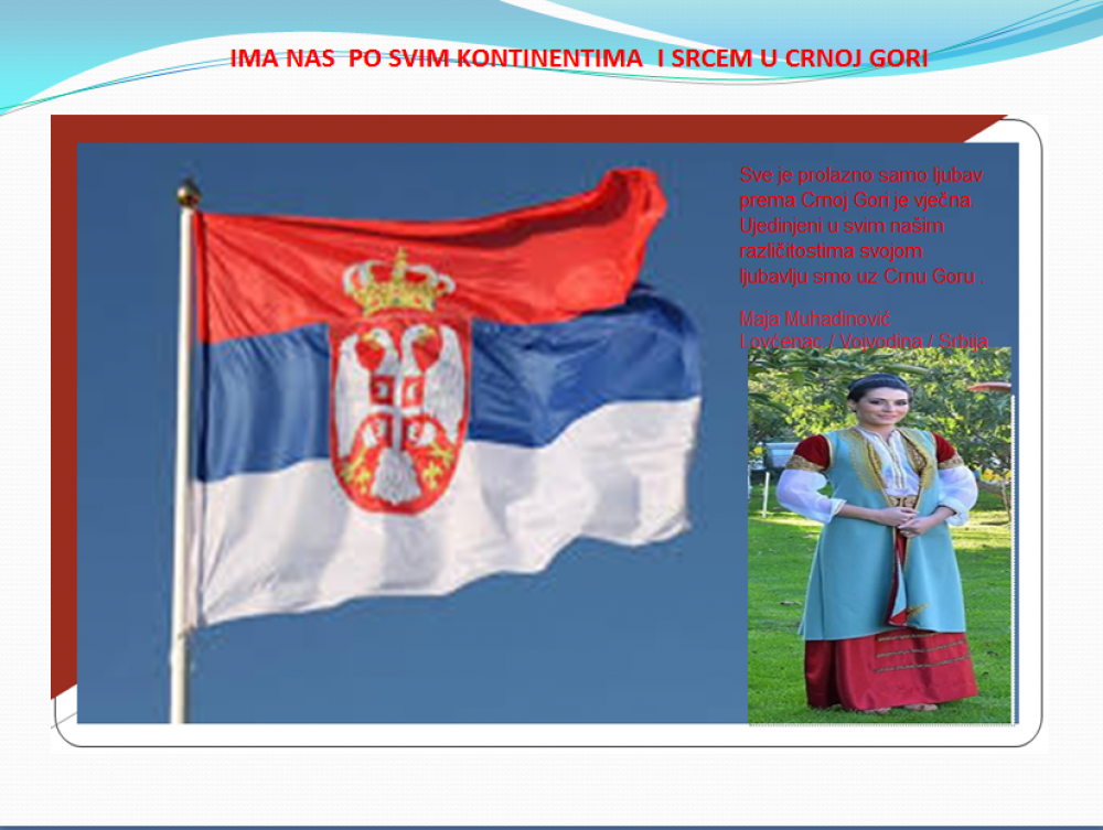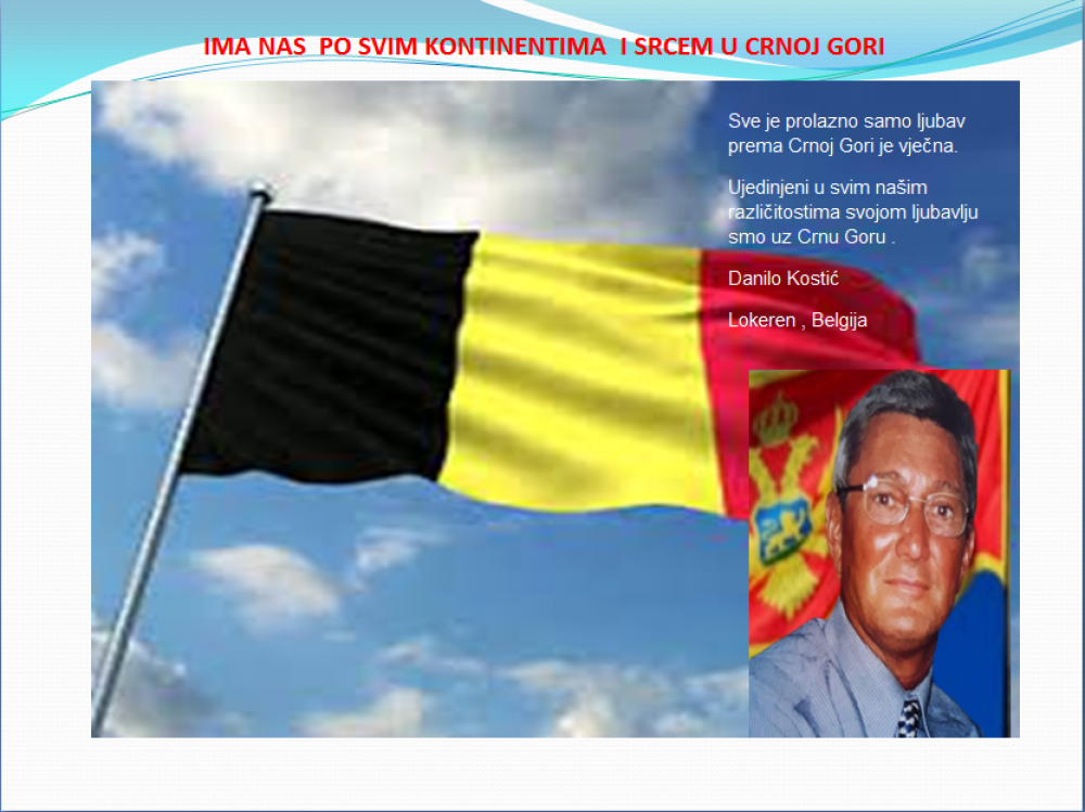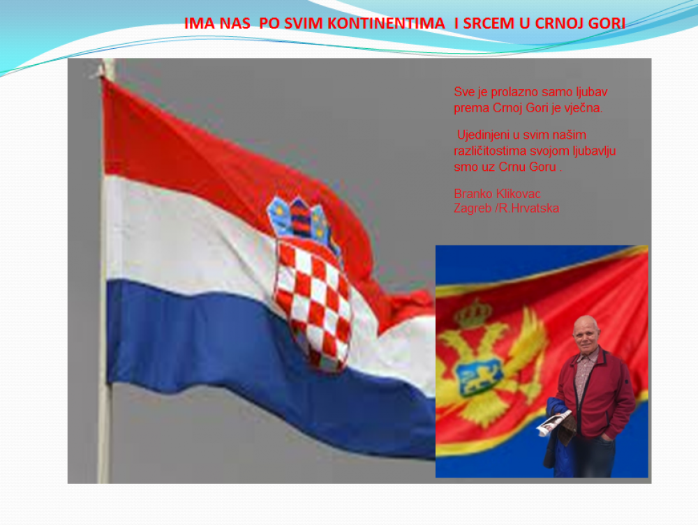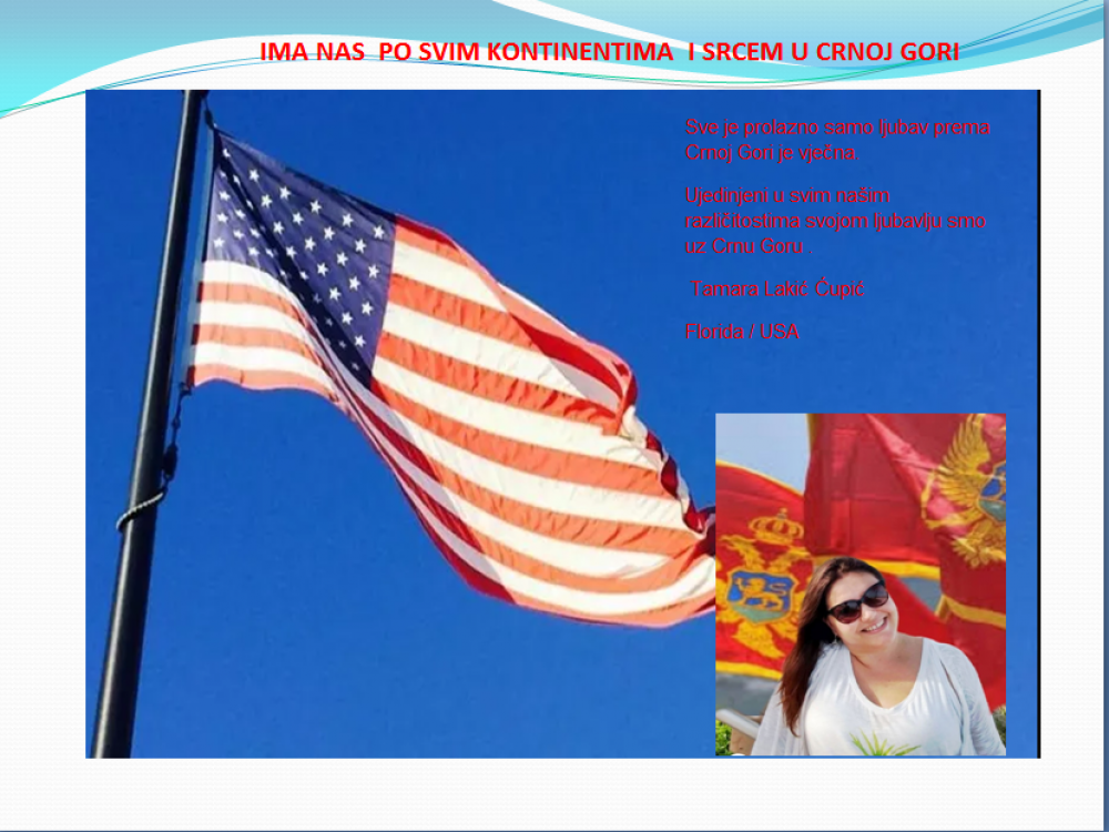 Okrenite se budućnosti, širite ljubav i bez obzira na sve vaše/naše lične pripadnosti , pripadnost Crnoj Gori se jedino mjeri samo ljubavlju prema njoj i ne zaboravite da NAS IMA PO SVIM KONTINENTIMA I SRCEM U CRNOJ GORI.