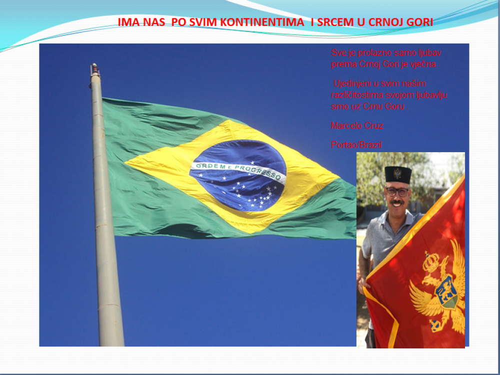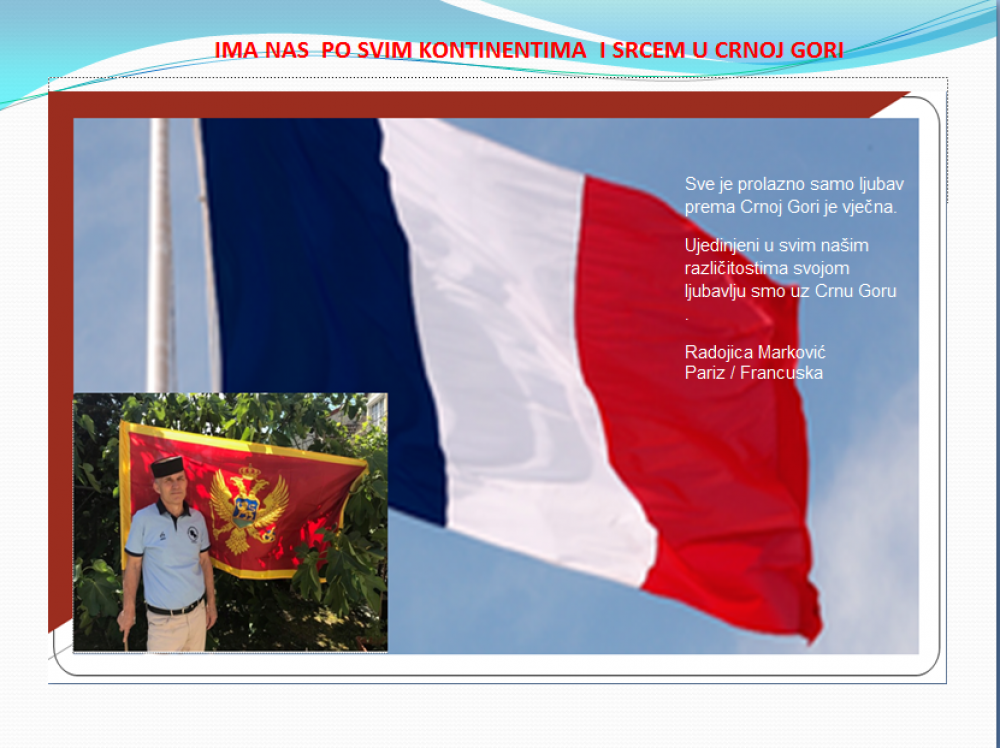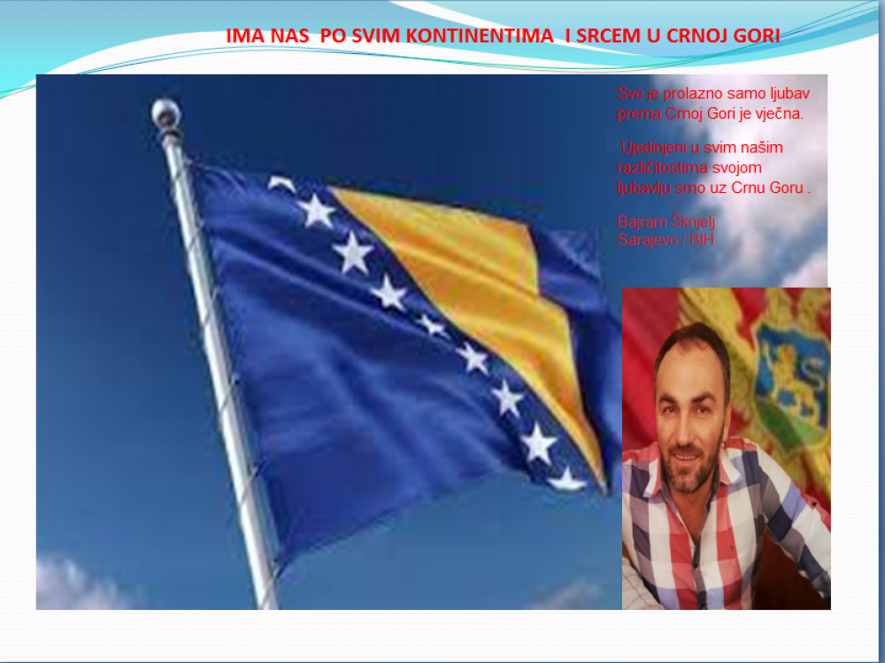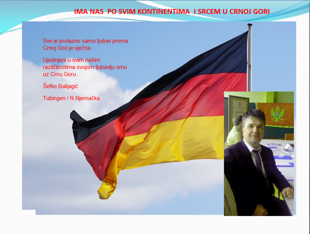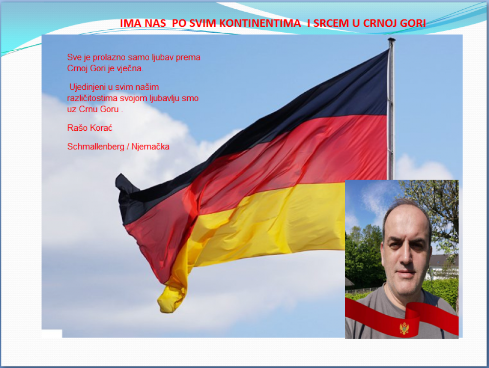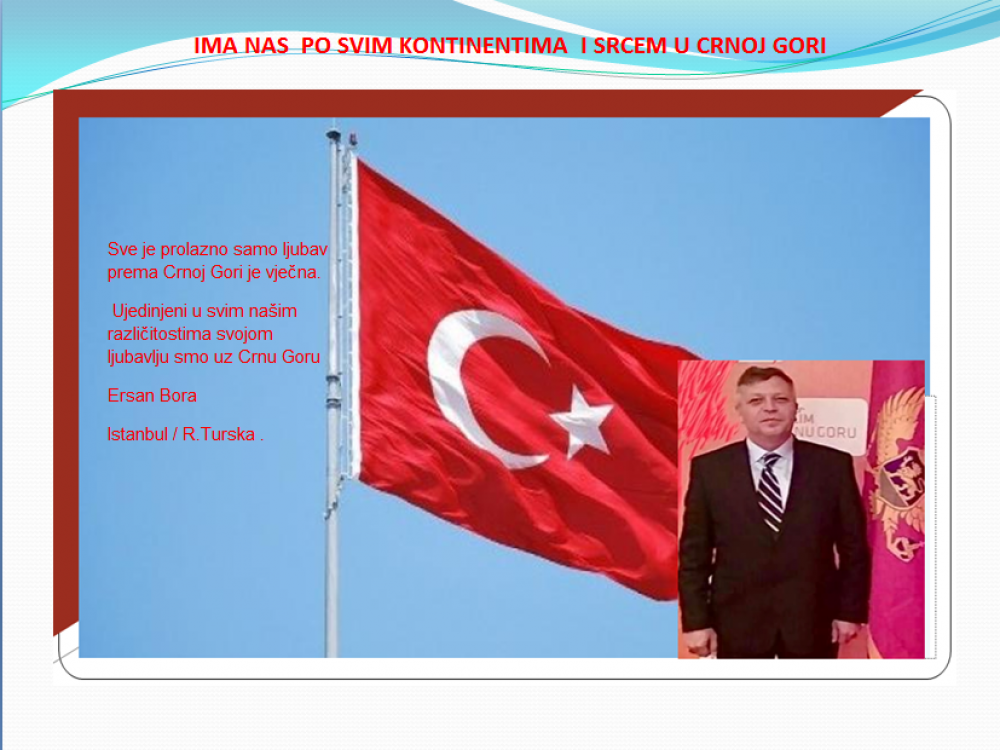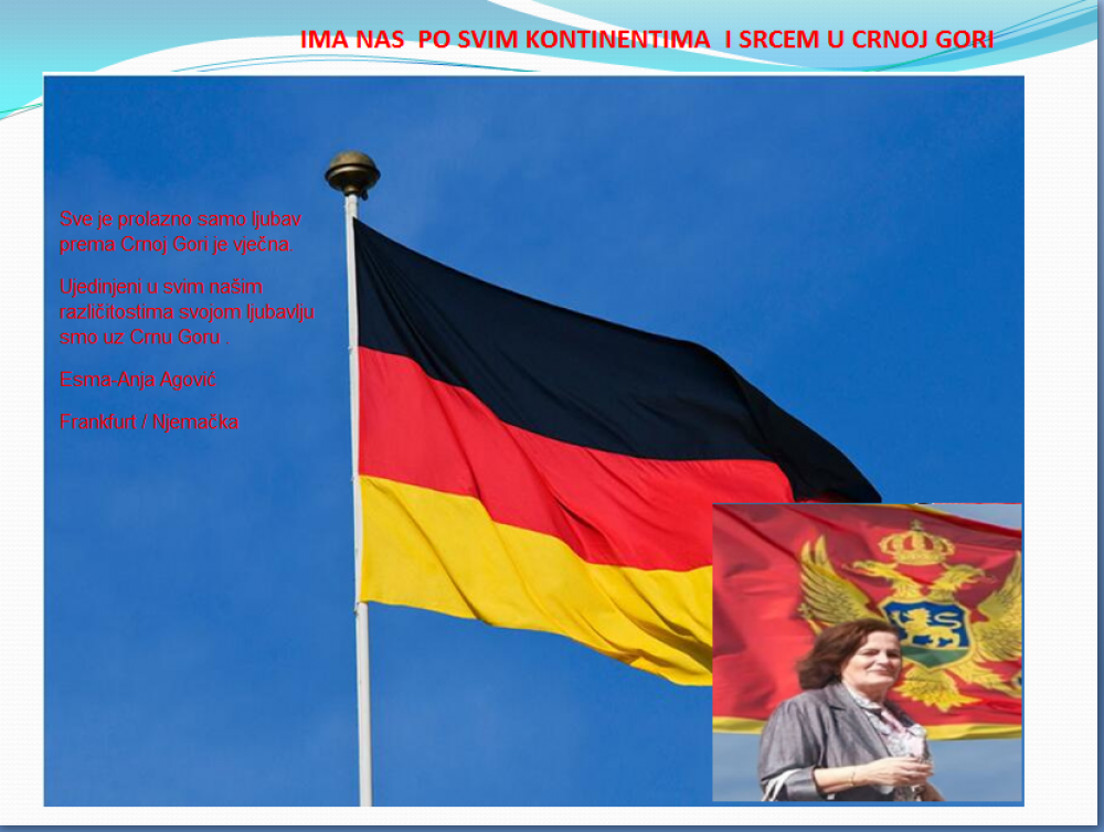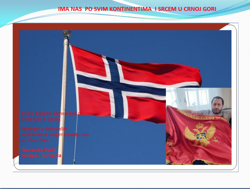 Okrenite se budućnosti, širite ljubav i bez obzira na sve vaše/naše lične pripadnosti , pripadnost Crnoj Gori se jedino mjeri samo ljubavlju prema njoj i ne zaboravite da NAS IMA PO SVIM KONTINENTIMA I SRCEM U CRNOJ GORI.