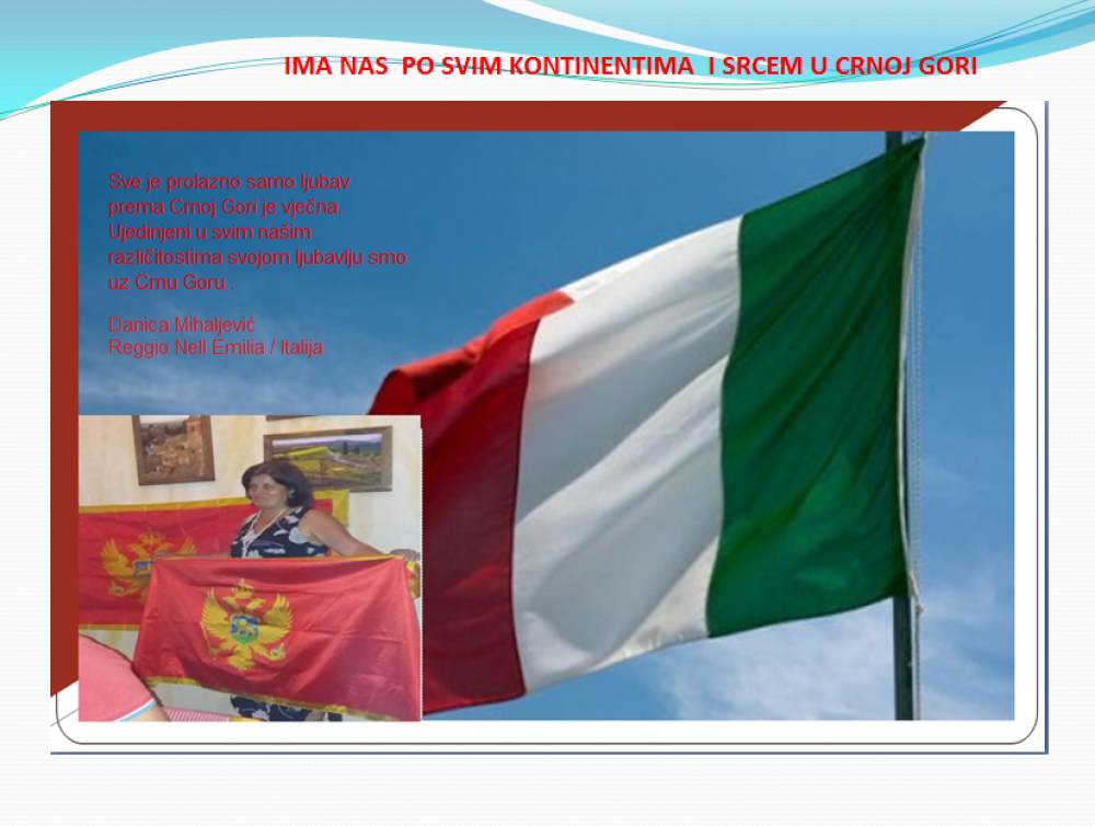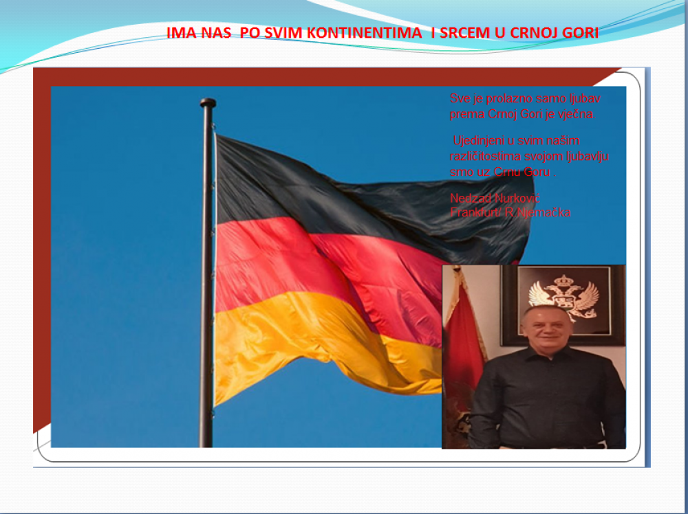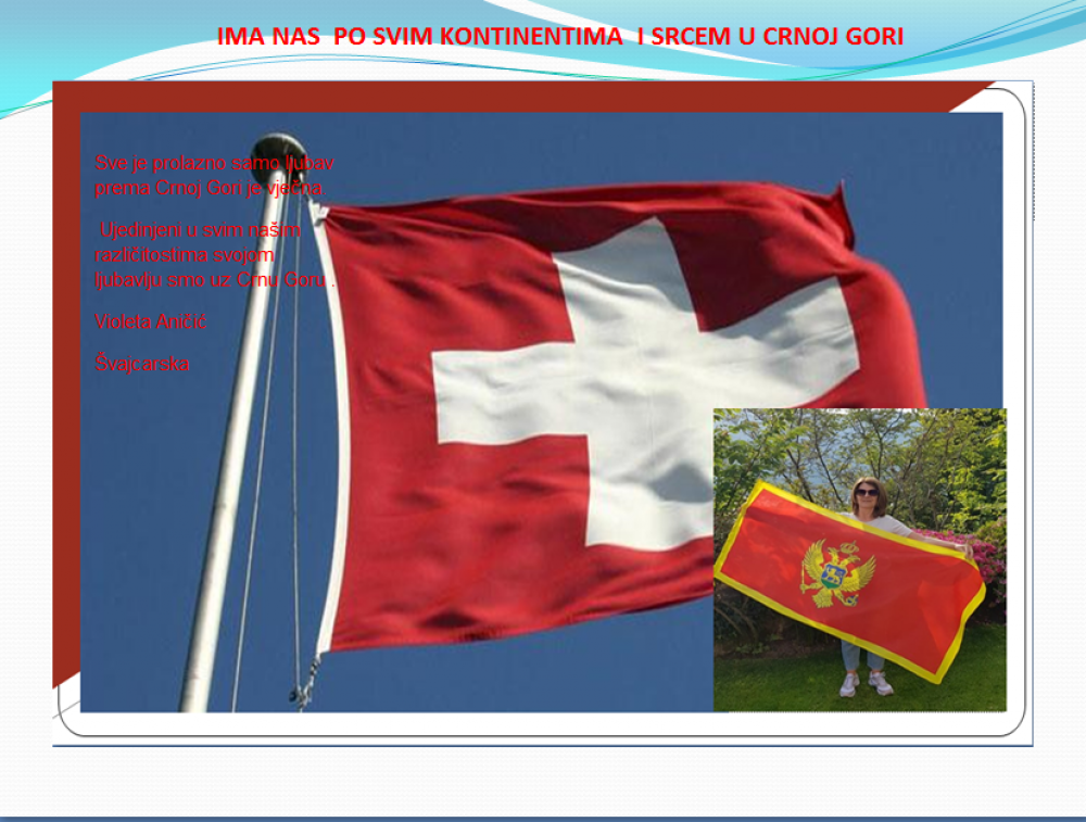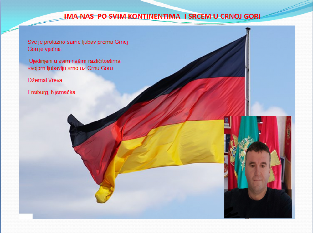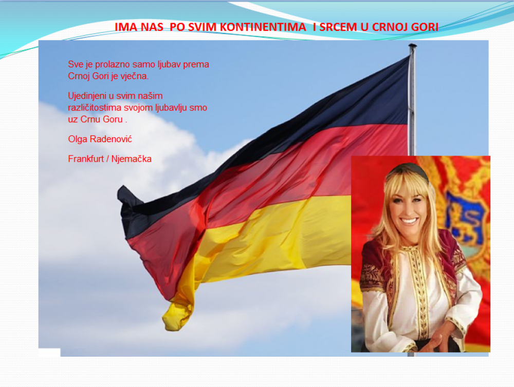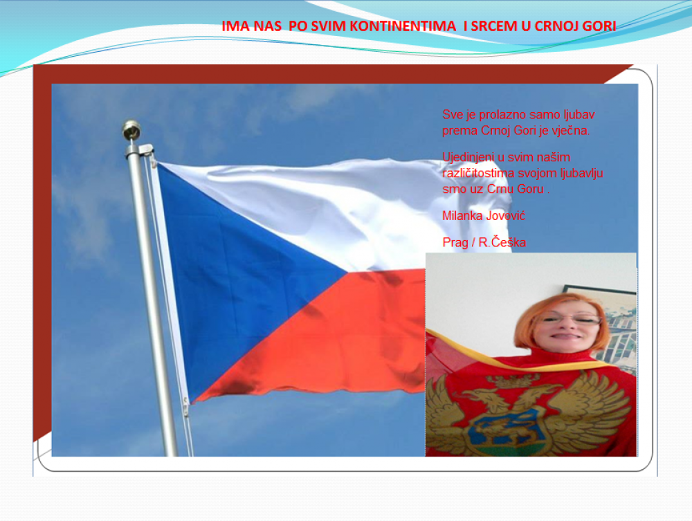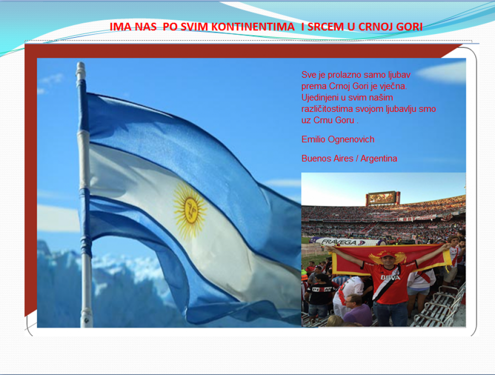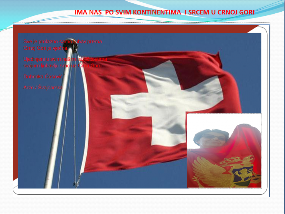 Okrenite se budućnosti, širite ljubav i bez obzira na sve vaše/naše lične pripadnosti , pripadnost Crnoj Gori se jedino mjeri samo ljubavlju prema njoj i ne zaboravite da NAS IMA PO SVIM KONTINENTIMA I SRCEM U CRNOJ GORI.
