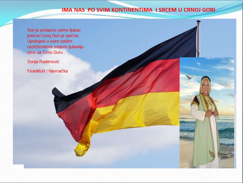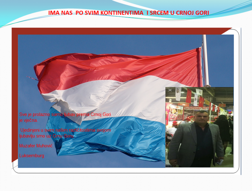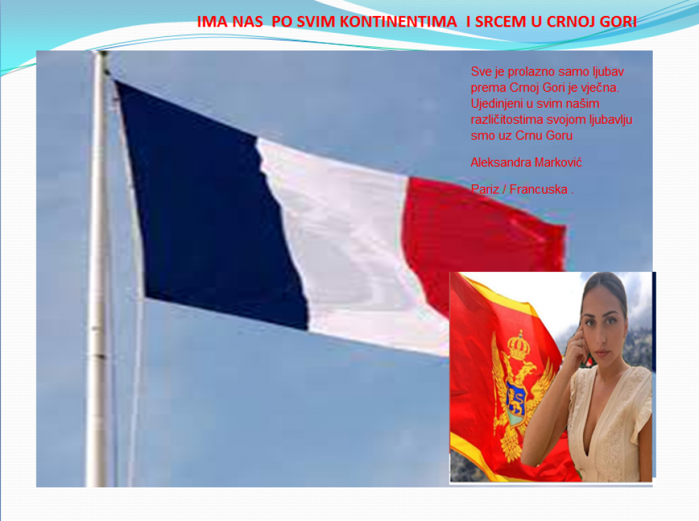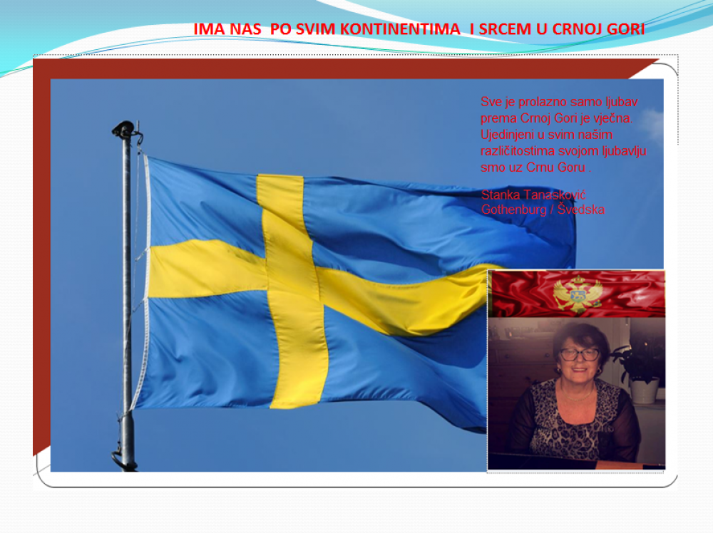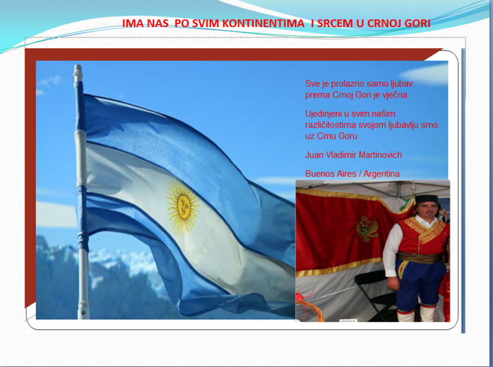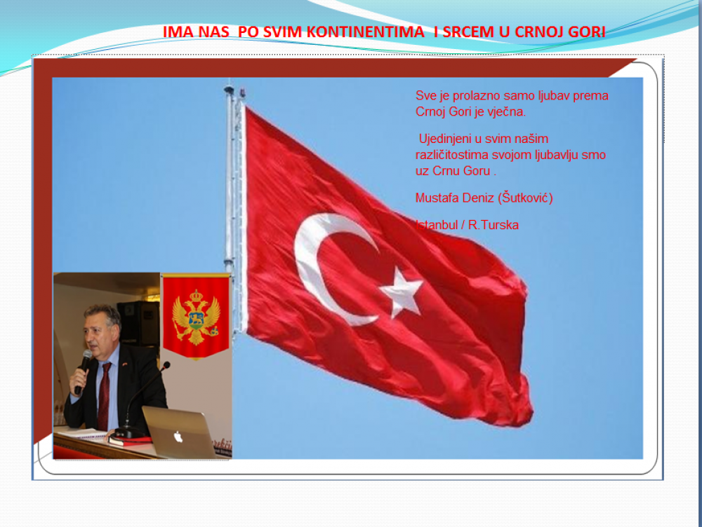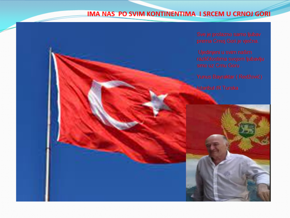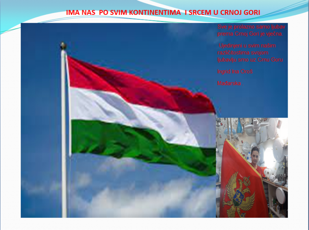 Okrenite se budućnosti, širite ljubav i bez obzira na sve vaše/naše lične pripadnosti , pripadnost Crnoj Gori se jedino mjeri samo ljubavlju prema njoj i ne zaboravite da NAS IMA PO SVIM KONTINENTIMA I SRCEM U CRNOJ GORI.