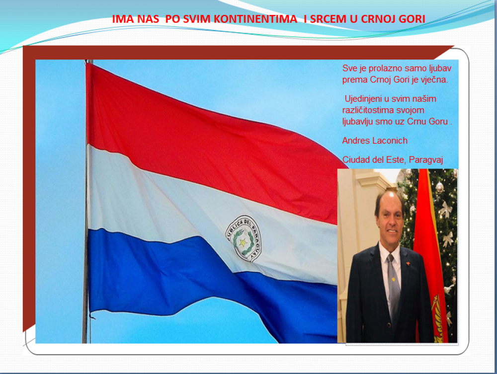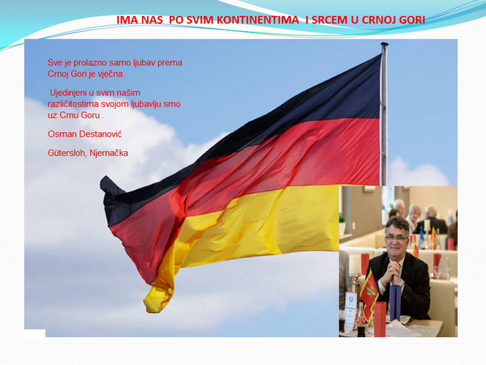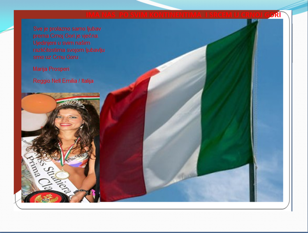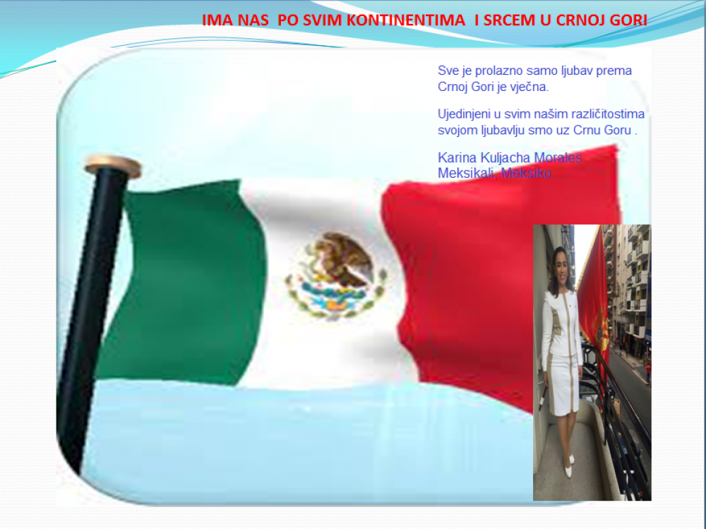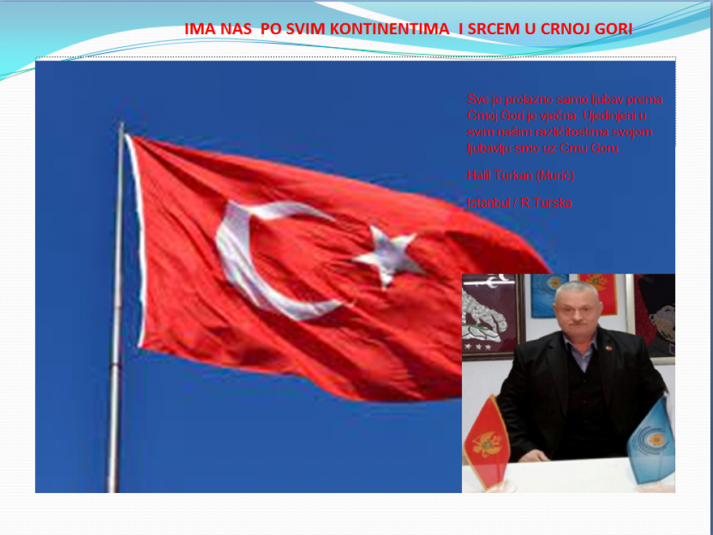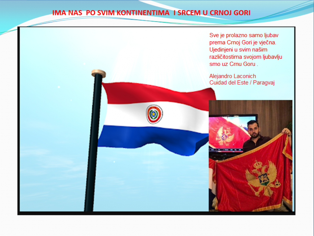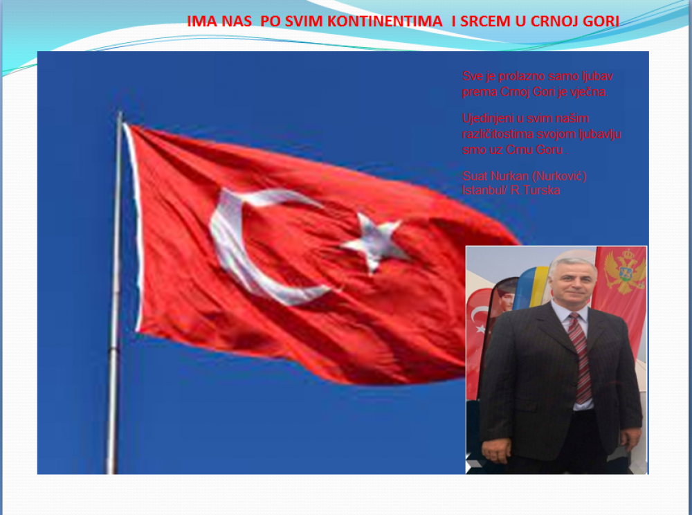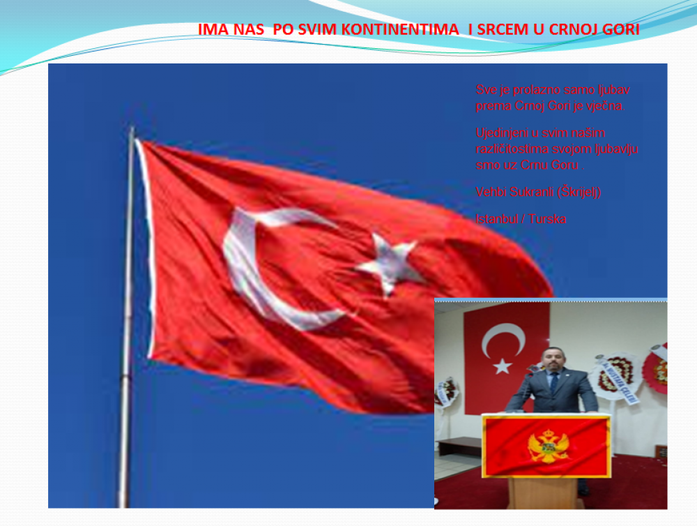 Okrenite se budućnosti, širite ljubav i bez obzira na sve vaše/naše lične pripadnosti , pripadnost Crnoj Gori se jedino mjeri samo ljubavlju prema njoj i ne zaboravite da NAS IMA PO SVIM KONTINENTIMA I SRCEM U CRNOJ GORI.