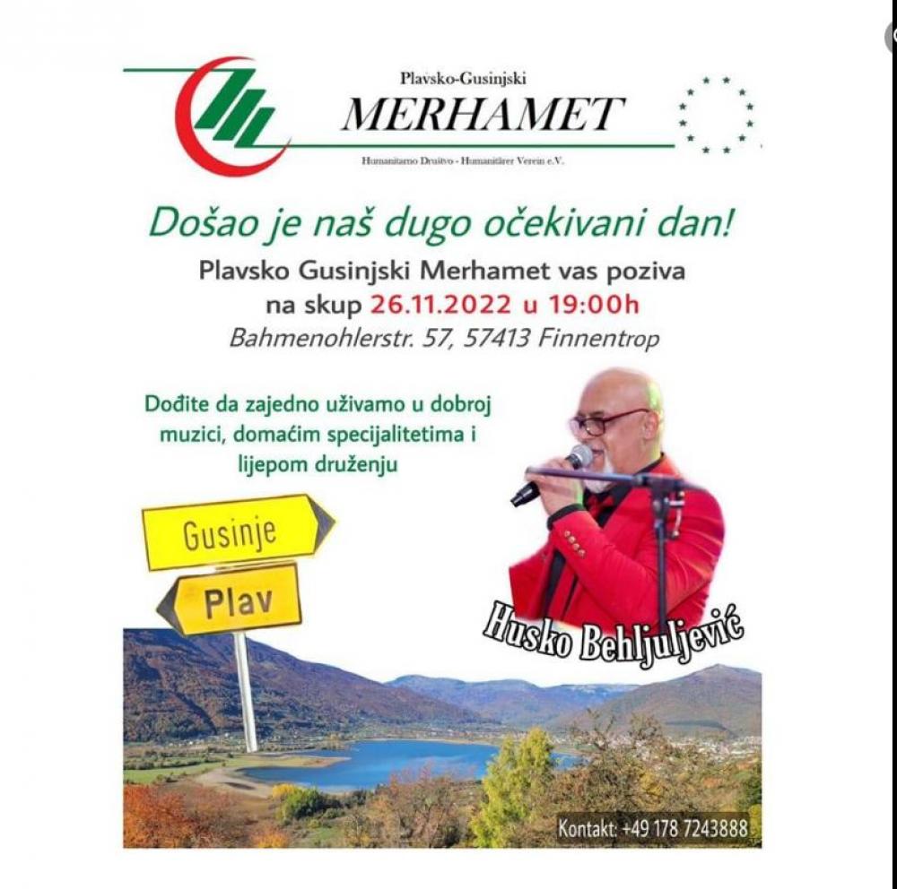 Večeras Plavsko Gusinjski Merhamet na čelu sa Bekom Selimanjinom organizuje ovogodišnji skup u Finnentropu/Njemačka u ime Asocijacije dijaspore Crne Gore im želim lijepo druženje vrijedno pamćenja i nastavak ostvarivanja ciljeva koje vrlo uspješno realizuju u svom trideseto godišnjem postojanju.