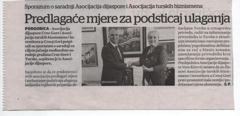 Sporazum sa Asocijacijom turskih investitora i biznismena u CG